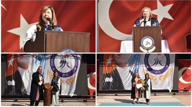 Törende, fakülte ve bölüm bazında dereceye giren öğrencilere plaket ve başarı belgeleri İzmir Demokrasi Üniversitesi Rektörü Prof. Dr. Bedriye Tunçsiper tarafından takdim edildi.