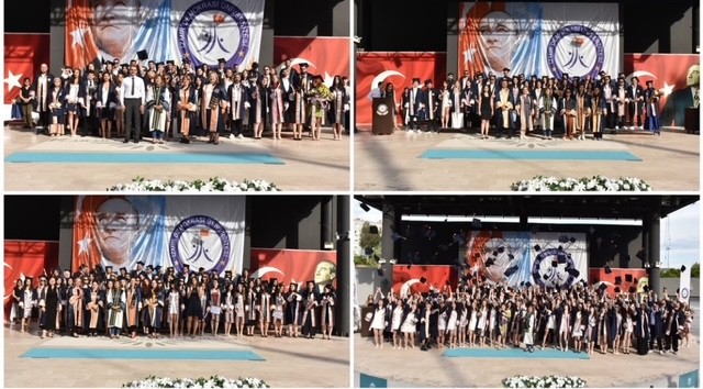 Törenin sonunda genç mezunlar hep birlikte meslek yeminlerini etti. Ardından keplerini havaya fırlatan öğrenciler, mezuniyet coşkusunu aileleri ve öğretim üyeleriyle birlikte doyasıya yaşadı.