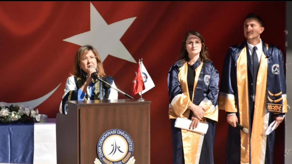 İzmir Demokrasi ÜniversitesiHedefimiz; öncelikle insani değerlerine sahip, ülkemize faydalı, yenilikçi, teknolojiyi yakından takip eden ve geliştiren vizyon sahibi öğrenciler yetiştirmektir. İzmir Demokrasi Üniversitesi; bilim, sağlık, sanat, ekonomi, kültür ve teknolojiye katkı sağlamayı; etik değerleri gözeterek yenilikçi ve disiplinler arası araştırmalar yapmayı; nitelikli, eleştirel düşünebilen, geleceğe yön veren bireyler yetiştirerek topluma hizmet etmeyi görev edinmiştir.