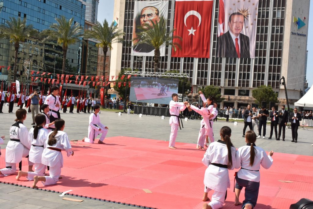 Coşkulu geçen kutlamalarda çeşitli okullardan öğrenciler, hazırladıkları spor gösterileri ve halk oyunlarıyla izleyicilerden büyük beğeni topladı.