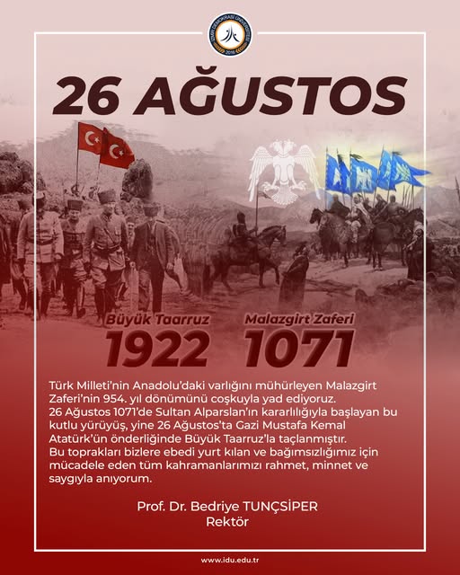 26 Ağustos 1071’de Sultan Alparslan’ın kararlılığıyla başlayan bu kutlu yürüyüş, yine bir 26 Ağustos’ta Gazi Mustafa Kemal Atatürk’ün önderliğinde Büyük Taarruz’la taçlanmıştır.