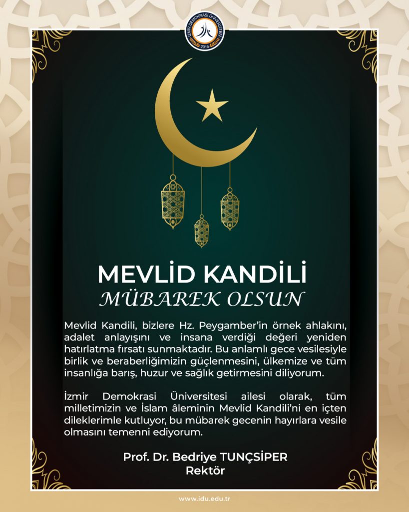 İzmir Demokrasi ÜniversitesiHedefimiz; öncelikle insani değerlerine sahip, ülkemize faydalı, yenilikçi, teknolojiyi yakından takip eden ve geliştiren vizyon sahibi öğrenciler yetiştirmektir. İzmir Demokrasi Üniversitesi; bilim, sağlık, sanat, ekonomi, kültür ve teknolojiye katkı sağlamayı; etik değerleri gözeterek yenilikçi ve disiplinler arası araştırmalar yapmayı; nitelikli, eleştirel düşünebilen, geleceğe yön veren bireyler yetiştirerek topluma hizmet etmeyi görev edinmiştir.