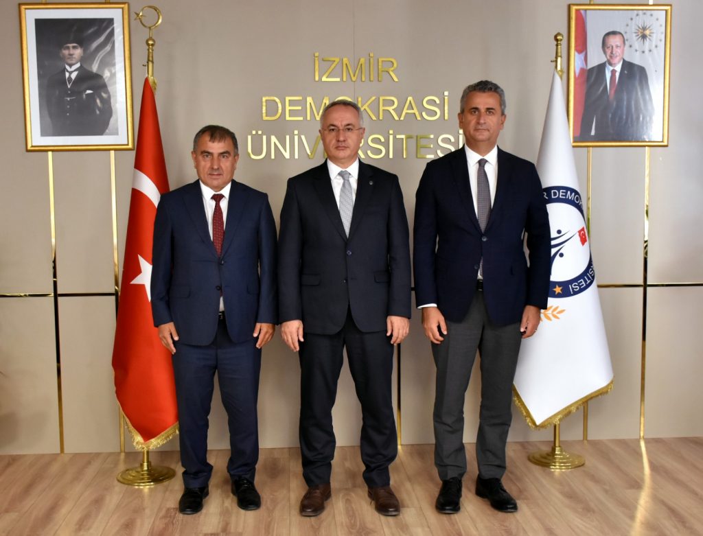 Karabağlar Kaymakamı Mehmet Özer ve Bornova Kaymakamı Muzaffer Şahiner, İzmir Demokrasi Üniversitesi Rektörü Prof. Dr. Selim Karahasanoğlu’nu makamında ziyaret ederek başarı dileklerini iletti.