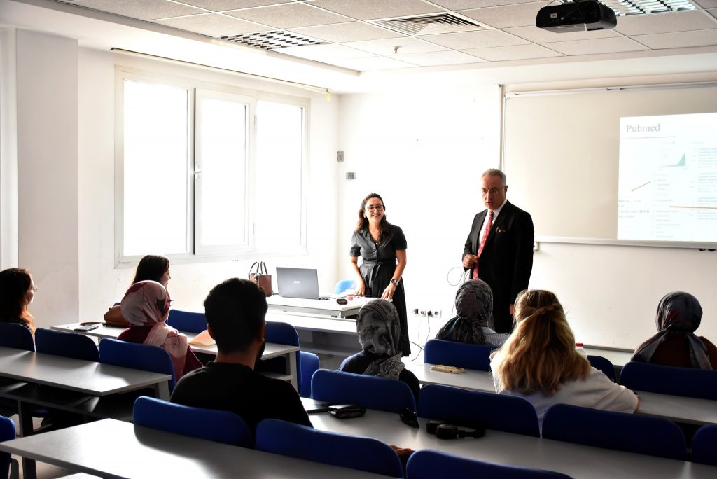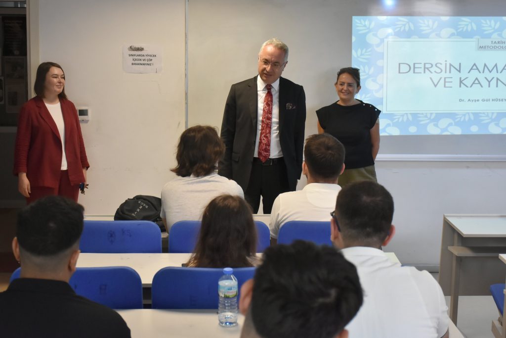 Aralarında bu yıl ilk kez üniversiteli olan birinci sınıf öğrencilerinin de bulunduğu dersliklere giren Karahasanoğlu, öğrencilerle dersler, bölümleri ve hedefleri hakkında sohbet etti.