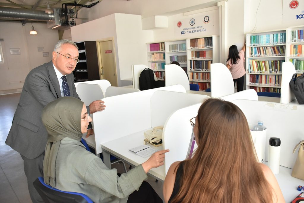 İzmir Demokrasi Üniversitesi Rektörü Prof. Dr. Selim Karahasanoğlu, üniversitenin kütüphanesini ziyaret ederek mevcut kitaplar ve yayınlar hakkında bilgi aldı. Aynı zamanda Türk Tarih Kurumu Bilim Kurulu üyesi de olan Karahasanoğlu, kütüphane içerisinde Türk Tarih Kurumu tarafından yaptırılan 100. Yıl Kitaplığını inceledi. Rektör Karahasanoğlu, kütüphanedeki öğrencilerle sohbet ederek başarı dileğinde bulundu.