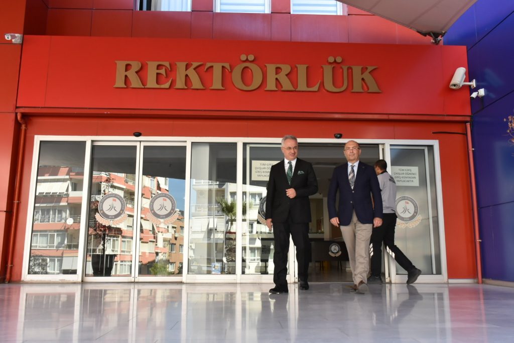 İzmir Tınaztepe Üniversitesi Rektörü Prof. Dr. Mustafa Güvençer, Rektör Prof. Dr. Selim Karahasanoğlu’nu ziyaret ederek yeni görevinden dolayı tebrik ederek başarı diledi.