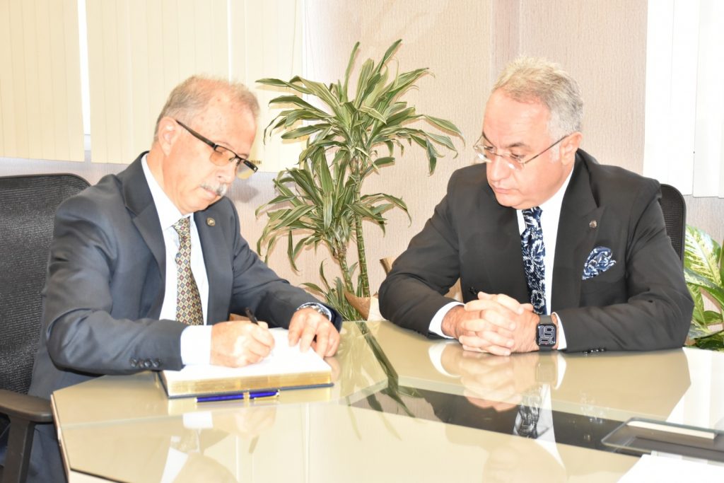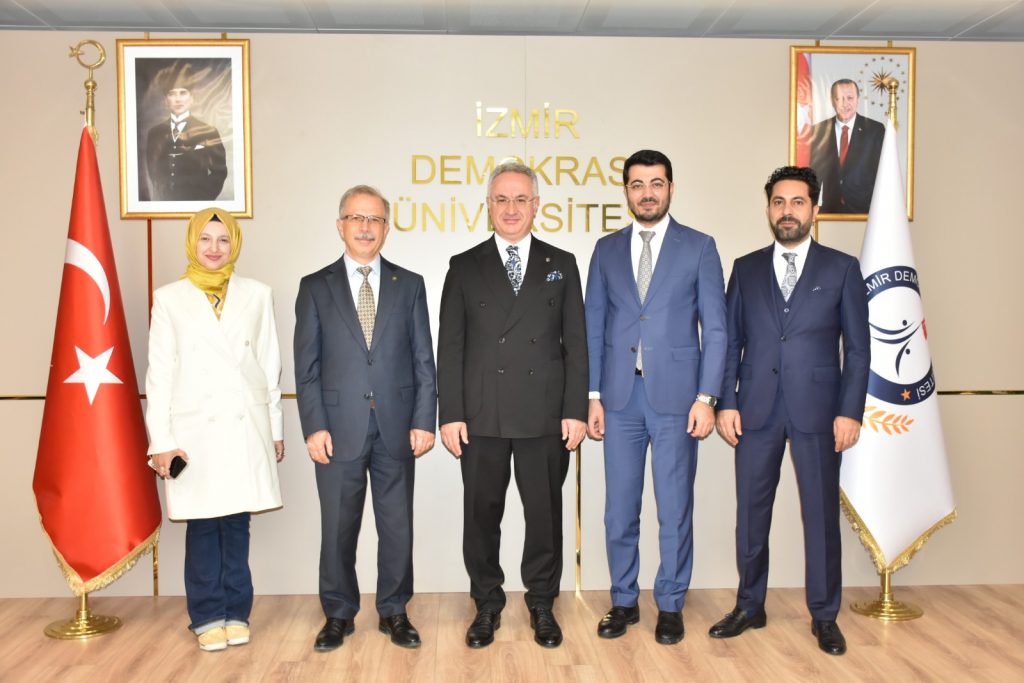 Genel Sekreter Ali Ramazan Tak ile gerçekleşen ziyarette konuk rektör, İzmir Demokrasi Üniversitesi Şeref Defteri’ni de imzaladı.