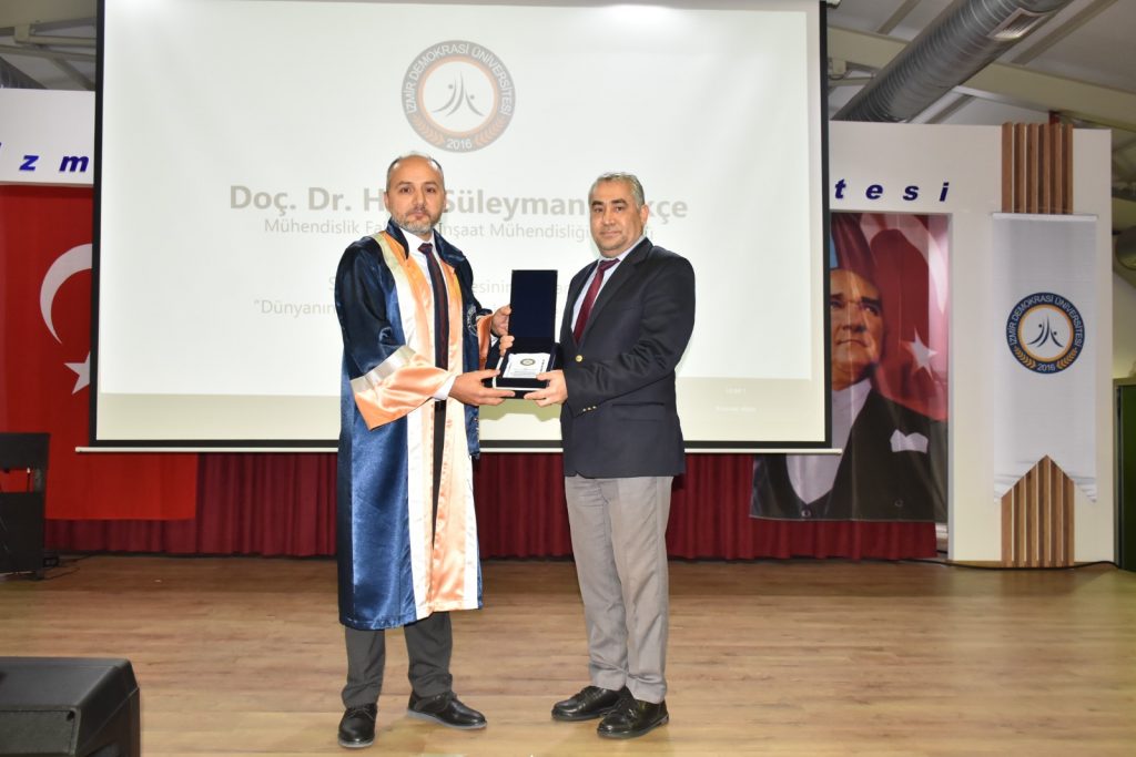 - Mühendislik Fakültesi İnşaat Mühendisliği Bölümü Öğretim Üyesi Doç. Dr. Hacı Süleyman Gökçe’ye plaketini Aydın Adnan Menderes Üniversitesi Rektörü Prof. Dr. Bülent Kent,