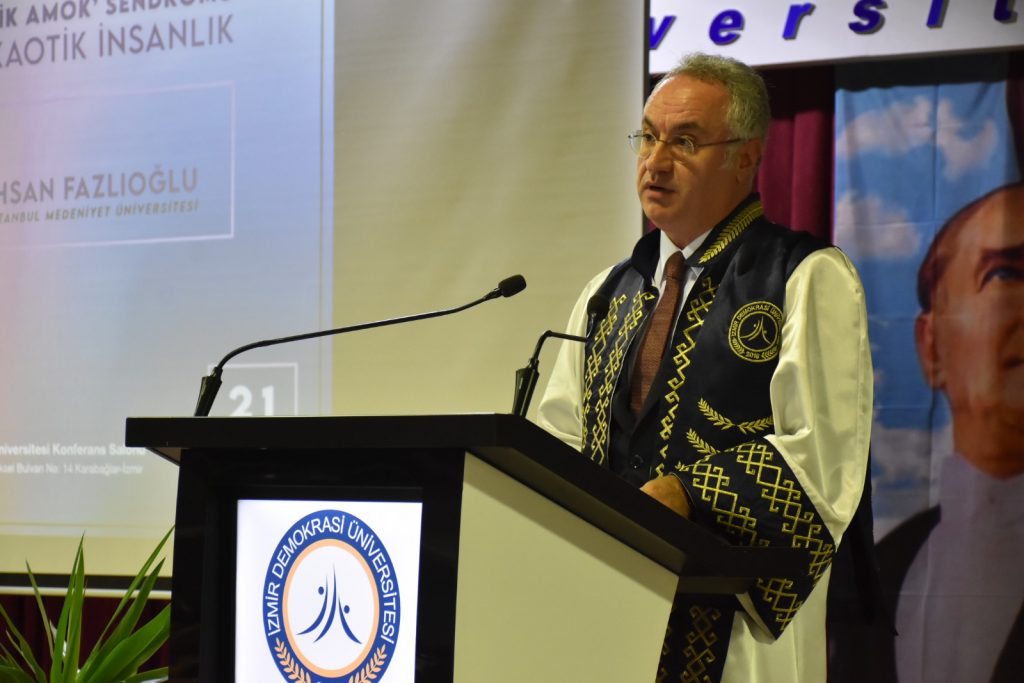Üniversiteye en yüksek puanla yerleşen Tıp Fakültesi öğrencisi Yahya Yavuz’un konuşmasıyla başlayan törende, açılış konuşmalarının ardından Prof. Dr. İhsan Fazlıoğlu’nun ‘Mitolojik Amok’ Sendromu ya da Kaotik İnsanlık başlıklı konferansı ilgiyle izlendi.