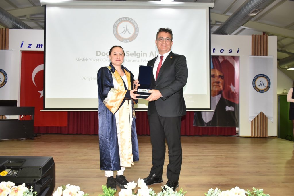 - Meslek Yüksekokulu Çevre Koruma Teknolojileri Bölümü Öğretim Üyesi Doç. Dr. Selgin Al’ın plaketini İzmir Yüksek Teknoloji Enstitüsü Rektörü Prof. Dr. Yusuf Baran,