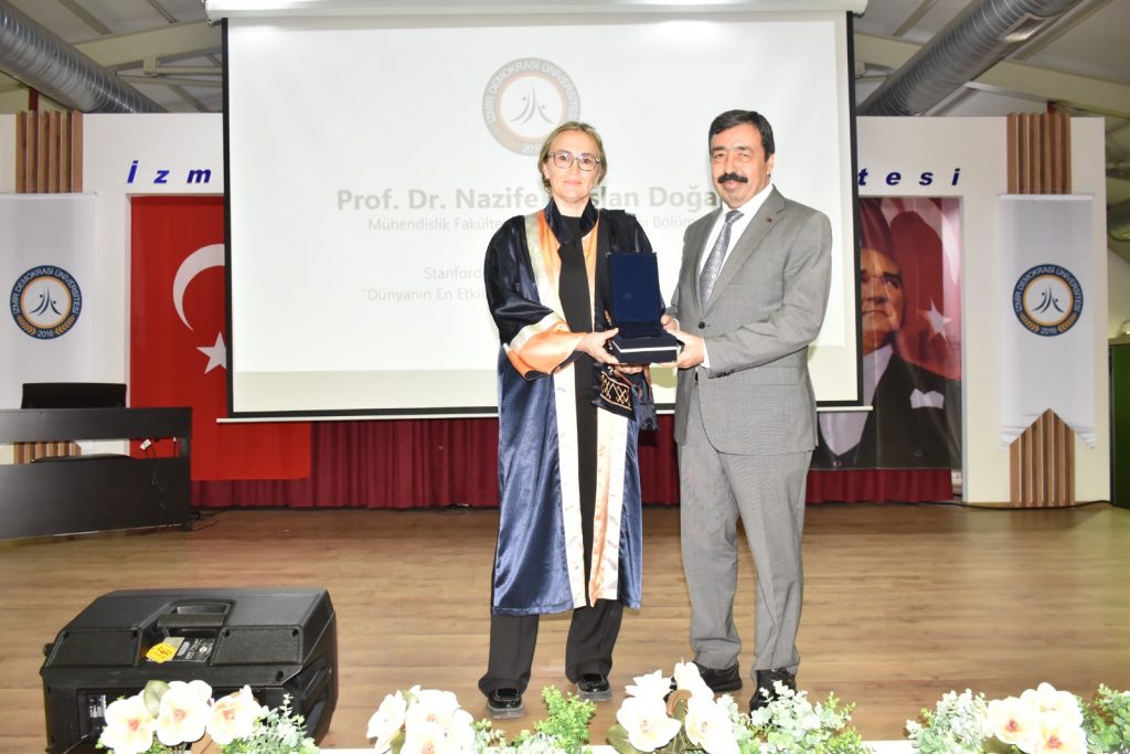 - Mühendislik Fakültesi İnşaat Mühendisliği Bölümü Öğretim Üyesi Prof. Dr. Nazife Eraslan Doğan’ın plaketini İzmir Kâtip Çelebi Üniversitesi Rektörü Prof. Dr. Saffet Köse,