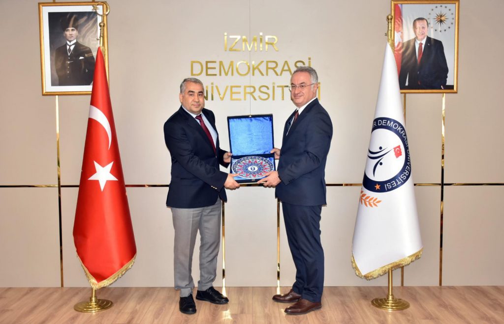 İzmir Demokrasi Üniversitesinin Akademik Yıl Açılış Töreni’ne katılan Aydın Adnan Menderes Üniversitesi Rektörü Prof. Dr. Bülent Kent, Rektör Prof. Dr. Selim Karahasanoğlu’nu makamında ziyaret ederek yeni görevi vesilesiyle tebrik etti, başarı dileklerini iletti.