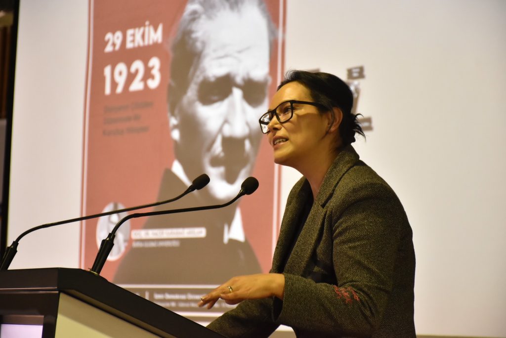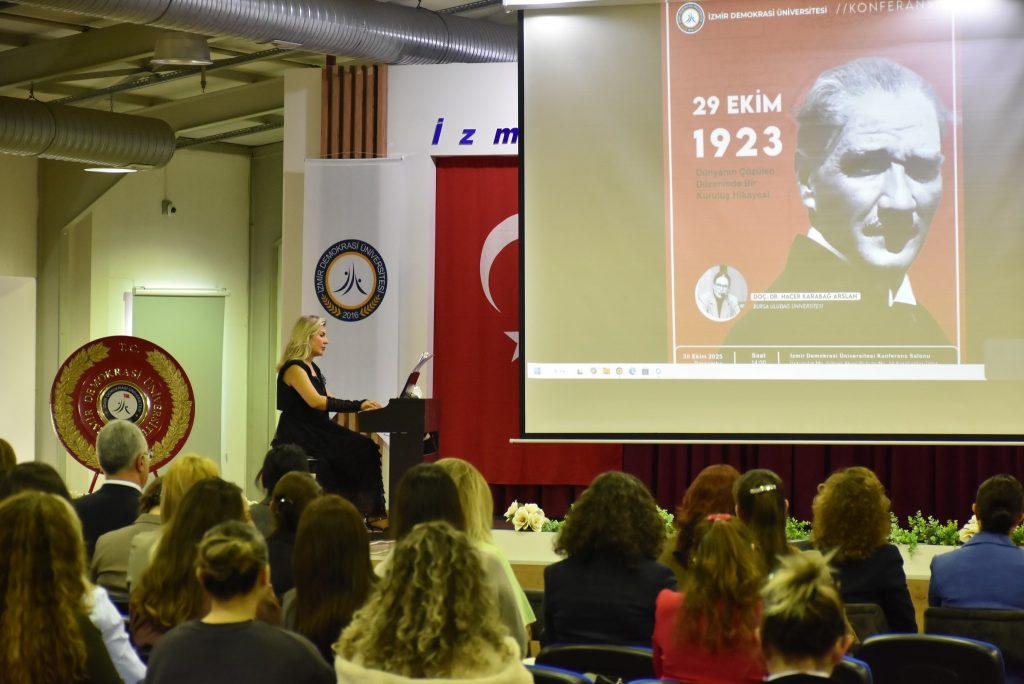 İzmir Demokrasi Üniversitesinde Cumhuriyet’in 102. yıl dönümü kapsamında “29 Ekim 1923: Dünyanın Çözülen Düzeninde Bir Kuruluş Hikayesi” başlıklı konferans düzenlendi. Bursa Uludağ Üniversitesi öğretim üyesi Doç. Dr. Hacer Karabağ Arslan’ın konuşmacı olarak katıldığı etkinlik, İzmir Demokrasi Üniversitesi Konferans Salonunda gerçekleştirildi.