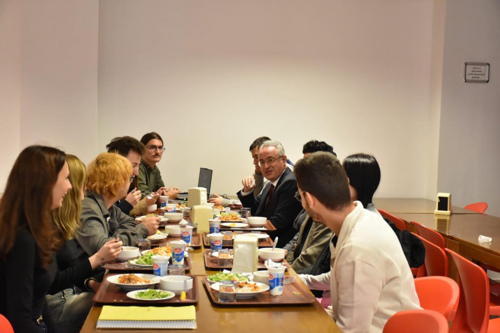 İzmir Demokrasi Üniversitesi Rektörü Prof. Dr. Selim Karahasanoğlu, öğrenci yemekhanesinde öğle yemeğinde öğrencilerle bir araya geldi. Rektör yardımcıları Prof. Dr. Ecehan Aras, Prof. Dr. Devrim Ünay ve Genel Sekreter Prof. Dr. Mikail Acıpınar’ın da katıldığı yemekte öğrencilerle keyifli bir sohbet gerçekleştirildi.