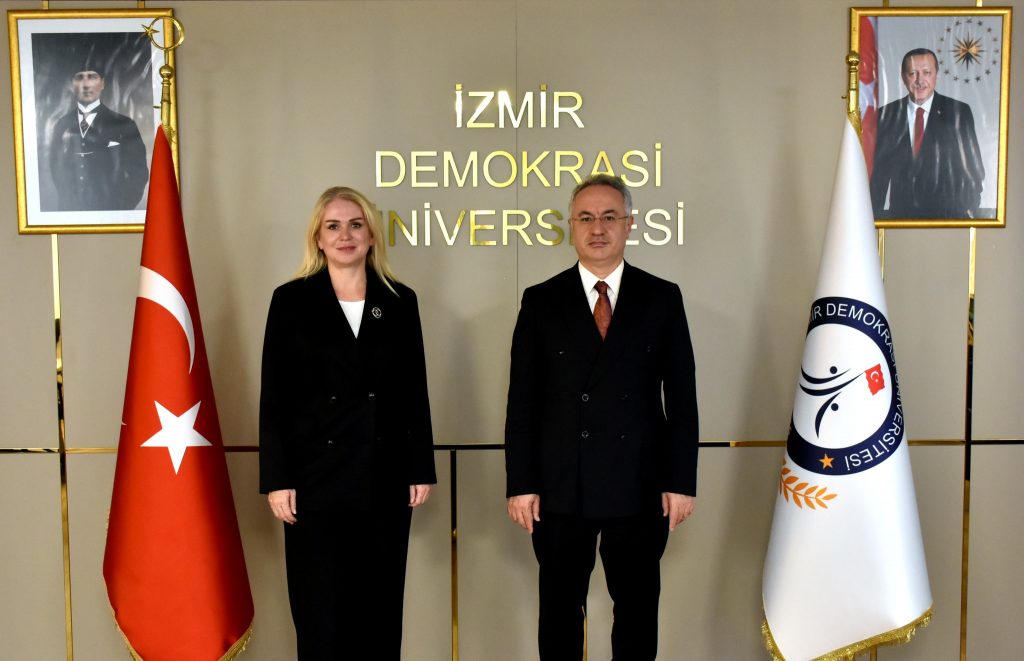 Karşıyaka İlçe Milli Eğitim Müdürü ve Kadın ve Demokrasi Derneği (KADEM) İzmir Temsilcisi Arzu Günaydın, Rektör Prof. Dr. Selim Karahasanoğlu’na hayırlı olsun ziyaretinde bulundu.