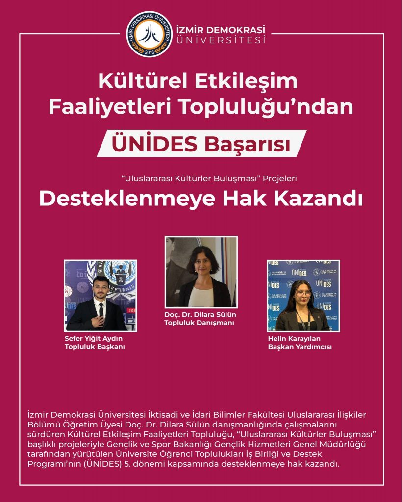 Topluluk, bu değerli desteği üçüncü kez kazanma başarısı gösterdi. Proje, Kültürel Etkileşim Faaliyetleri Topluluğu Başkanı Sefer Yiğit Aydın (Uluslararası İlişkiler Bölümü), Başkan Yardımcısı Helin Karayılan (İngiliz Dili ve Edebiyatı Bölümü) ve topluluk yönetim ekibinin ortak katkılarıyla hazırlandı.