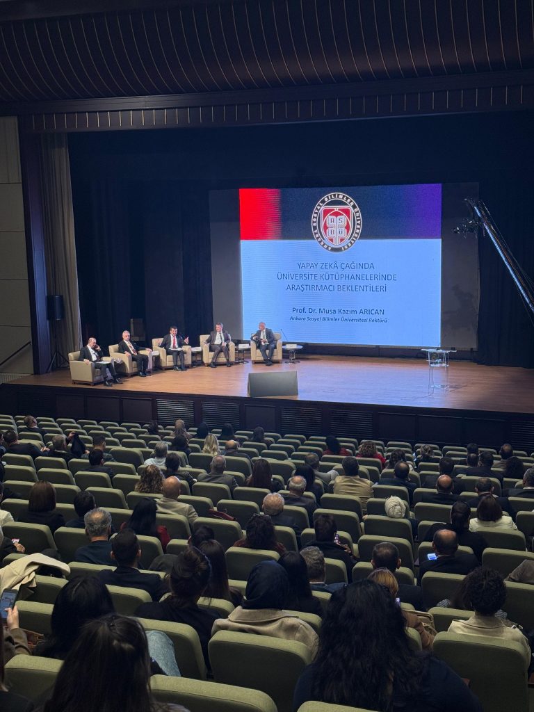 Programda, moderatörlüğünü Gazi Üniversitesi Rektörü Prof. Dr. Uğur Ünal’ın yaptığı “Yapay Zeka Çağında Üniversite Kütüphanelerinde Araştırmacı Beklentileri” konulu panelde Rektör Prof. Dr. Selim Karahasanoğlu’nun yanı sıra İbni Haldun Üniversitesi Rektörü Prof. Dr. Atilla Arkan, Ankara Sosyal Bilimler Üniversitesi Rektörü Prof. Dr. Musa Kazım Arıcan ve Karadeniz Teknik Üniversitesi Rektörü Prof. Dr. Hamdullah Çuvalcı panelist olarak yer aldı.