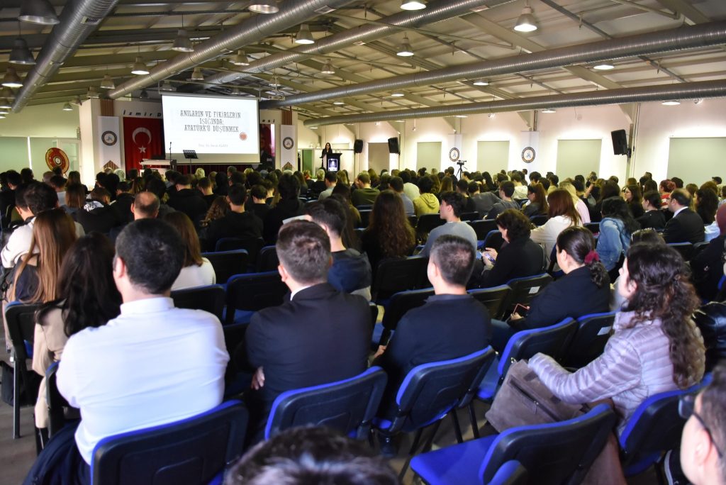Saat 09.05’te başlayan törende iki dakikalık saygı duruşunun ardından İstiklal Marşı okundu. Program kapsamında Anılarla Atatürk adlı video gösteriminin ardından Fen Edebiyat Fakültesi Tarih Bölümünden Doç. Dr. Beral Alacı tarafından “Anıların ve Fikirlerin Tanıklığında: Atatürk’ü Düşünmek” konulu konferans verildi.