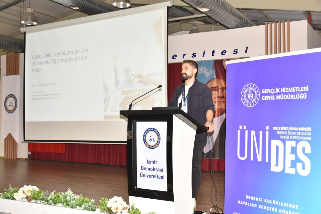İzmir Demokrasi Üniversitesinde, Gençlik ve Spor Bakanlığı iş birliğiyle Kalite Topluluğu tarafından düzenlenen Yapay Zekâ ve Kalite Zirvesi gerçekleştirildi. Program, İzmir Demokrasi Üniversitesi Rektör Yardımcısı Prof. Dr. Devrim Ünay’ın katılımı ve açılış konuşmasıyla başladı.