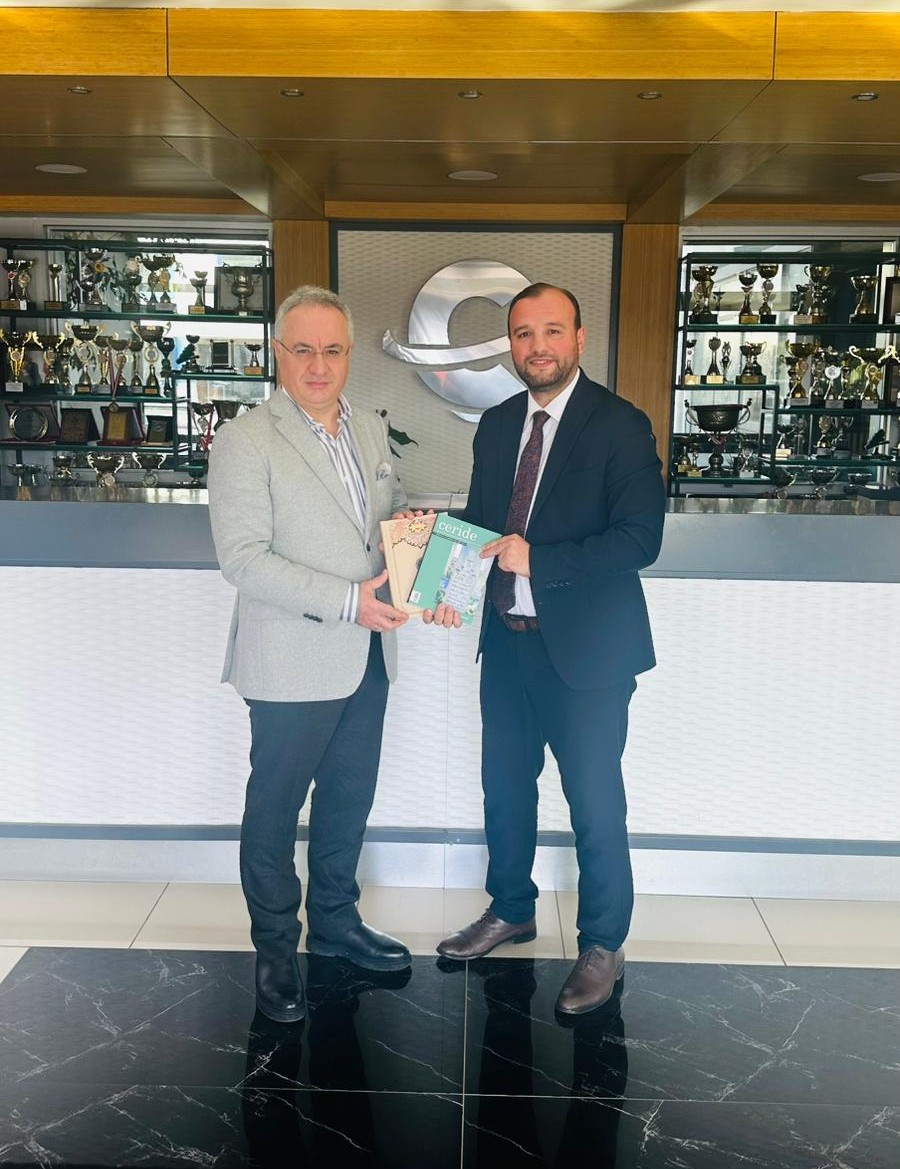 Ziyarette Rektör Karahasanoğlu, Ceride dergisinin son sayısı ile İzmir Tire Necip Paşa Kütüphanesi’nde muhafaza edilen kıymetli bir eserdeki tezhiplerden ilham alınarak oluşturulan İzmir Demokrasi Üniversitesi özel tasarım ajandasını takdim etti.