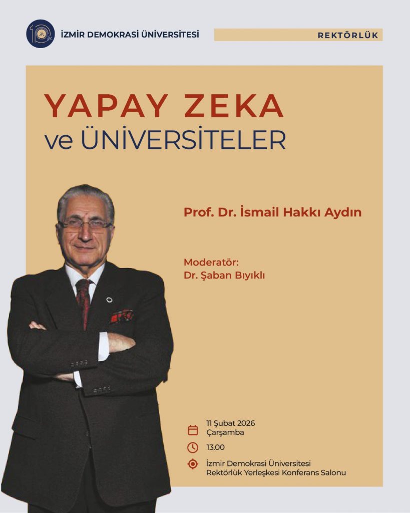 Prof. Dr. İsmail Hakkı Aydın’ın katılımıyla gerçekleşecek konferansta, yapay zekânın üniversitelere etkisi ele alınacak.