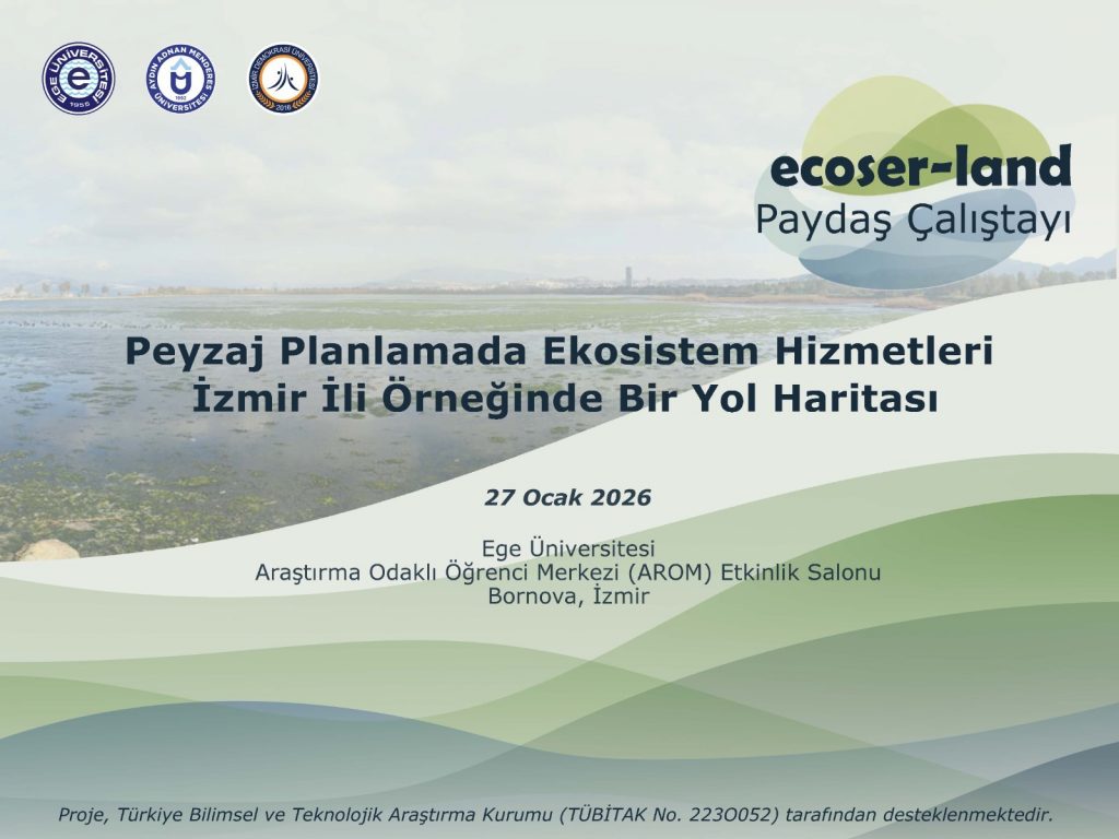 İzmir Demokrasi Üniversitesi Mimarlık Fakültesi Peyzaj Mimarlığı Bölümünden Doç. Dr. Birsen Kesgin Atak ile İktisadi ve İdari Bilimler Fakültesi Yönetim Bilişim Sistemleri Bölümünden Dr. Öğretim Üyesi Can Saygıner’in araştırmacı olarak yer aldığı, “Peyzaj Planlamada Ekosistem Hizmetleri: İzmir İl Örneğinde Bir Yol Haritası” başlıklı TÜBİTAK 1001 projesi kapsamında, 27 Ocak 2026 tarihinde Ege Üniversitesi Araştırma Odaklı Öğrenci Merkezi’nde paydaş çalıştayı gerçekleştirildi.