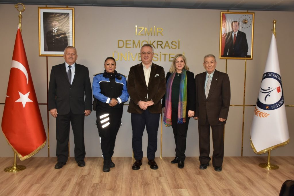 İzmir İl Emniyet Müdürü Yardımcısı ve Toplum Destekli Polis Şube Müdürü Gülsüm Gültepe ile Ege Üniversitesi Edebiyat Fakültesi Tarih Bölümü’nden (E) Prof. Dr. Necmi Ülker, Rektör Prof. Dr. Selim Karahasanoğlu’na ziyarette bulundu.