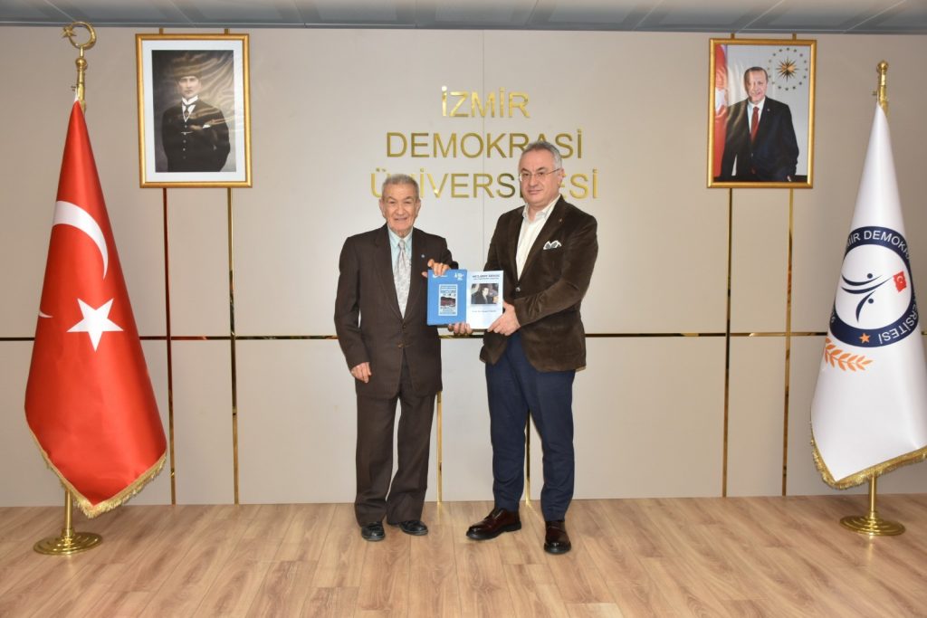 İzmir Demokrasi Üniversitesi Fen – Edebiyat Fakültesi Dekan V. Prof. Dr. Berna Ayça Ülker Erkan’ın da yer aldığı ziyarette Prof. Dr. Necmi Ülker “Anıların İzinde Bir Cumhuriyet Hikayesi” ve İzmir Kalkınma Ajansı (İZKA) Yayınları’ndan çıkan “Ticaret Limanı İzmir’in Doğuşu 1688-1740” adlı kitaplarını Rektör Karahasanoğlu’na hediye etti.
